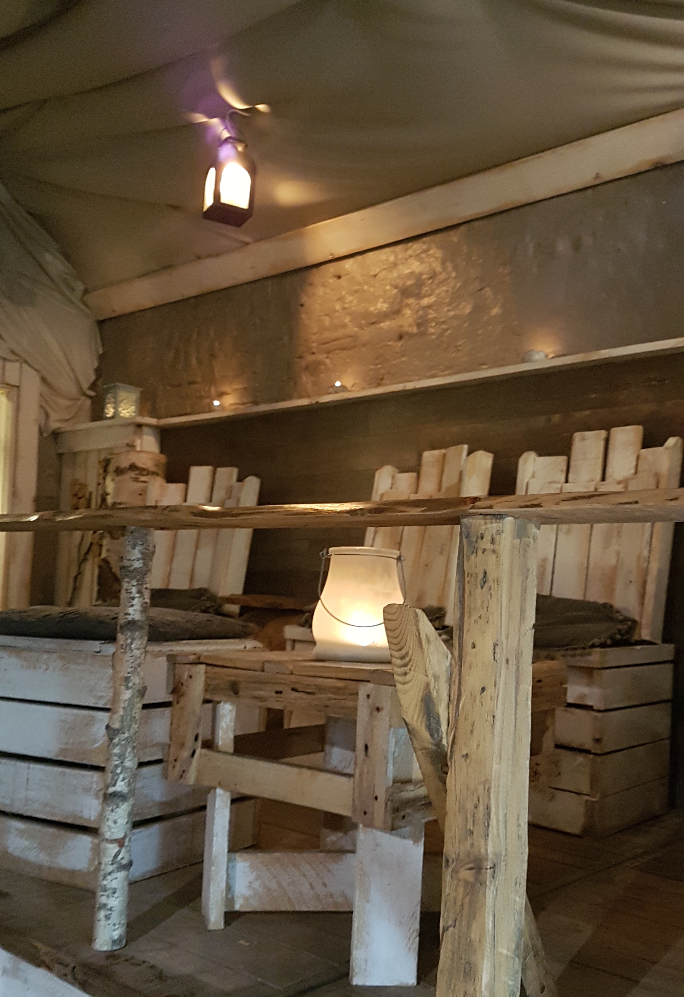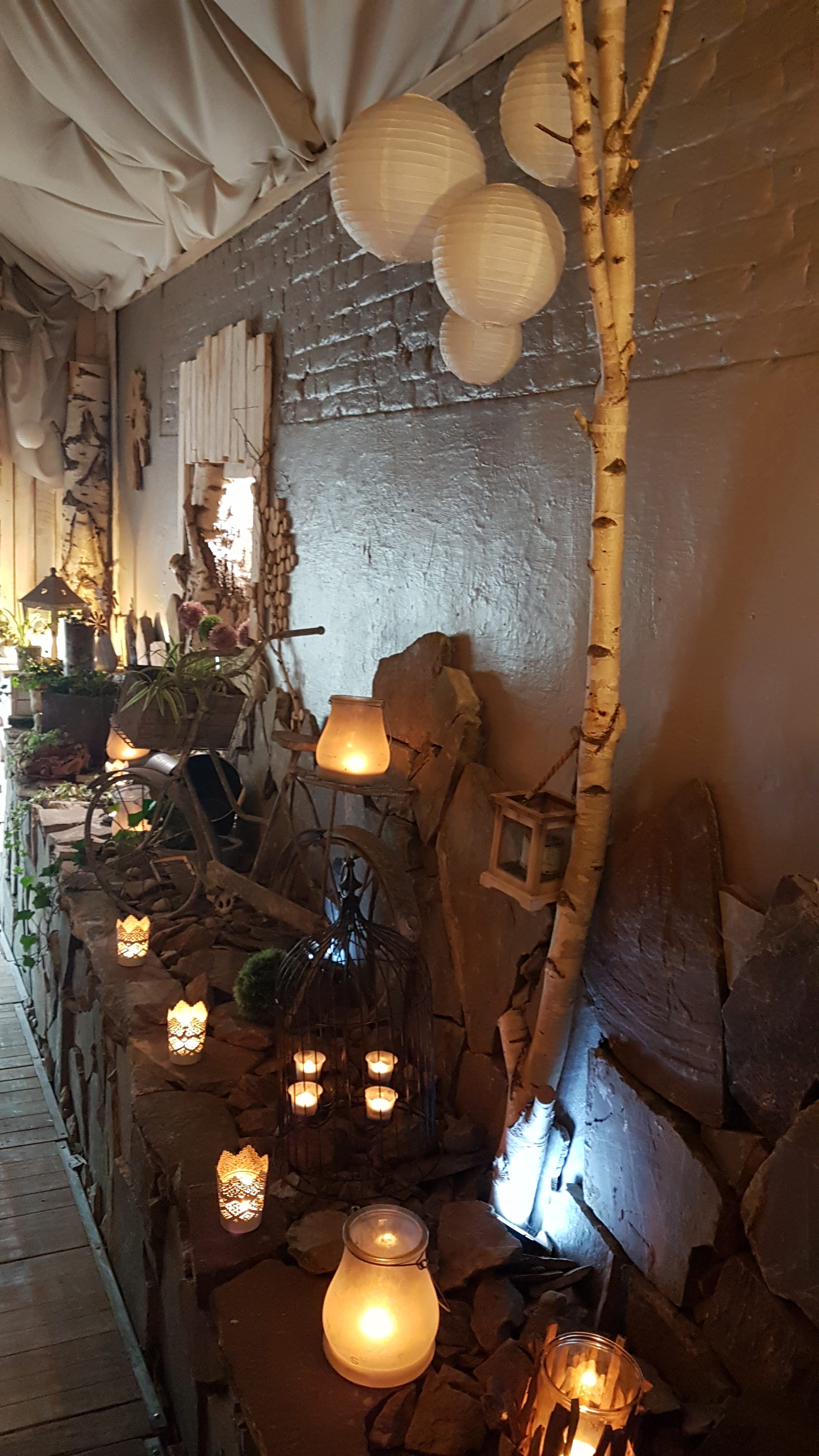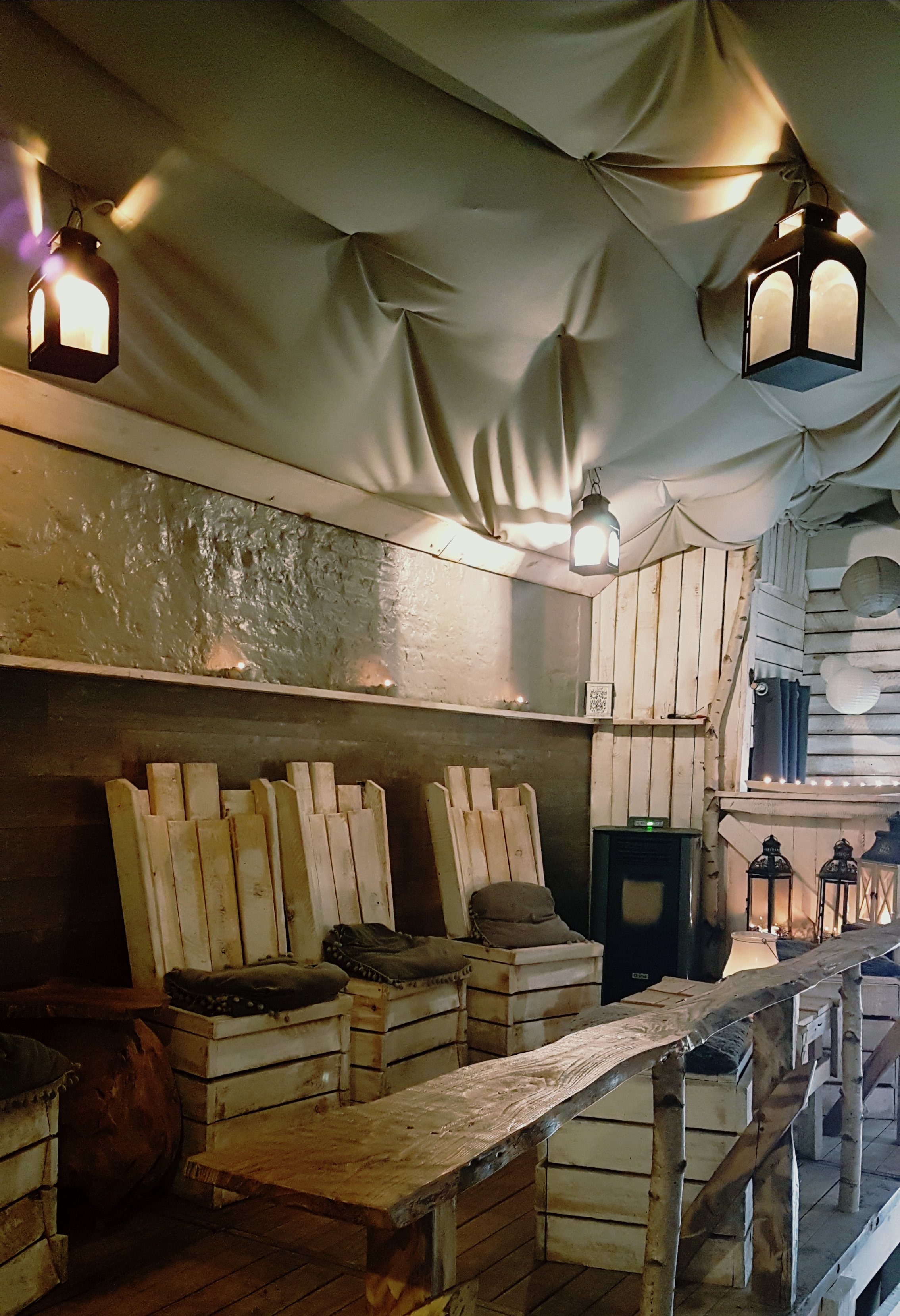 Une magnifique décoration toute en bois, des petites lumières tamisées,… tout un programme pour une soirée chic et cosy !