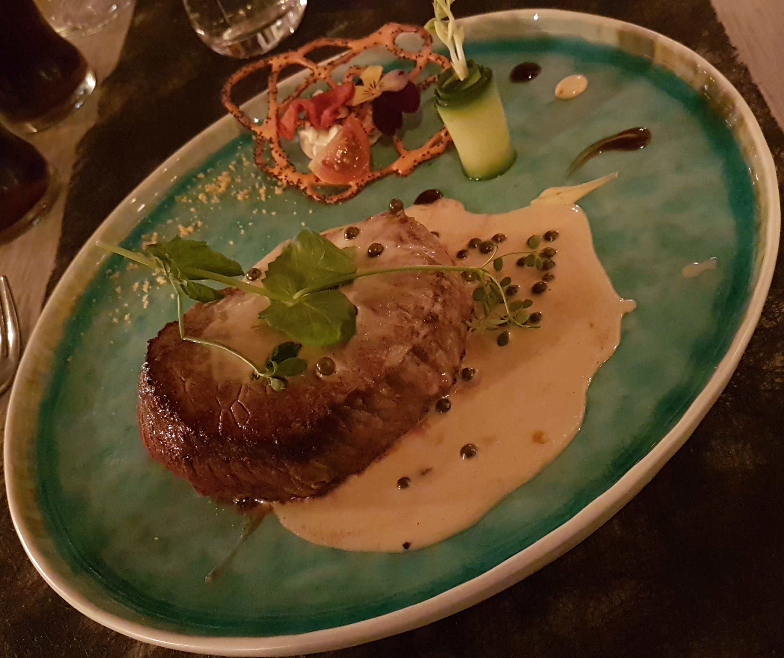 Le service a l’air bien organisé. Dès que nous sommes installés les apéritifs sont commandés. Le cocktail maison (plutôt sucré) est pas mal et des petites mises en bouche nous sont servies en accompagnement. Elles sont vraiment délicieuses et raffinées. Un réel succès pour cette entrée en matière!