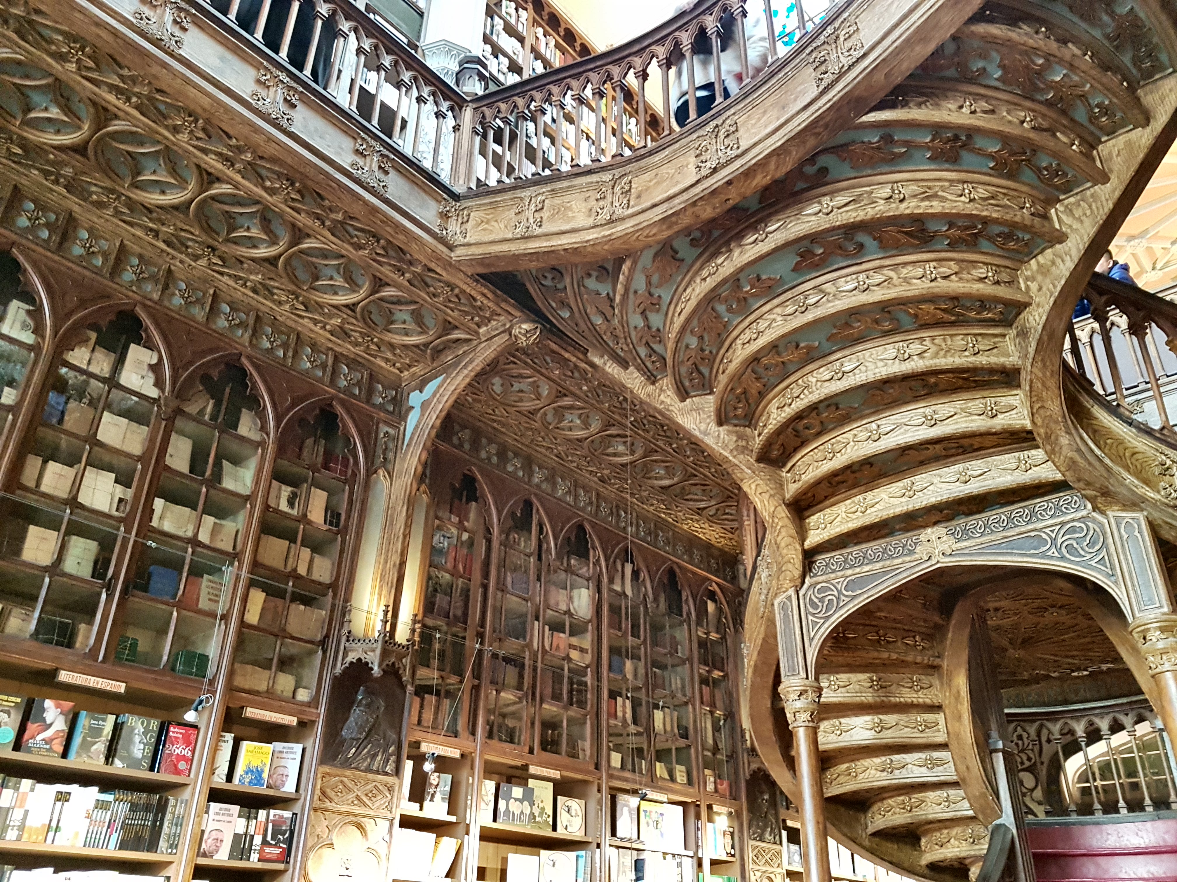 Nous prenons ensuite la direction de la Librairie Lello ou Librairie Chardron (Adresse : Rua das Carmelitas, 144 à Porto). Au-dessus de cette rue, il y a également une place avec une charmante petite fontaine.Vous pouvez réserver votre visite de la librairie à l’avance (lien ici) ou bien sur place dans le magasin se trouvant juste à côté…